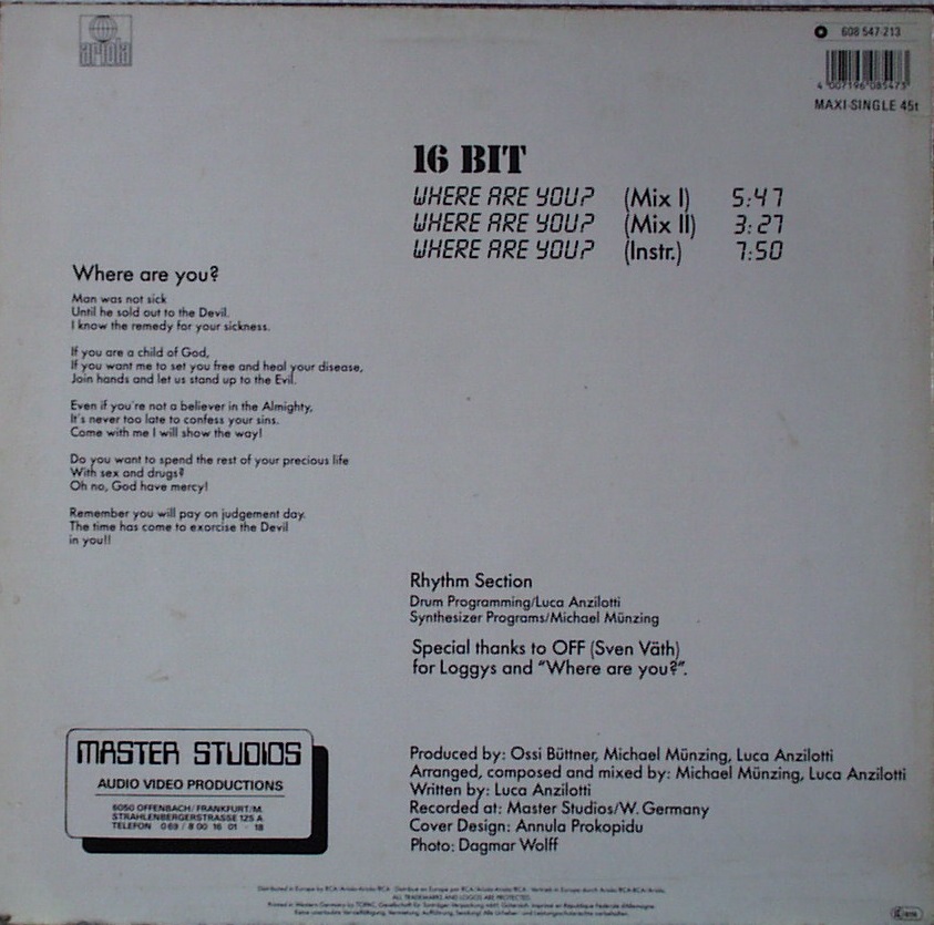 16 Bit - Where Are You ? (Mix I) / (MixII) / (Instrumental) - 12"