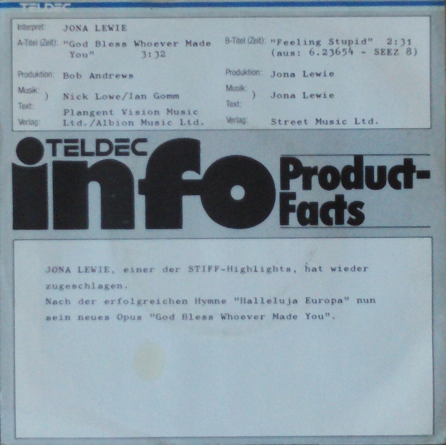 Lewie, Jona - God Bless Whoever Made You / Feeling Stupid - 7"