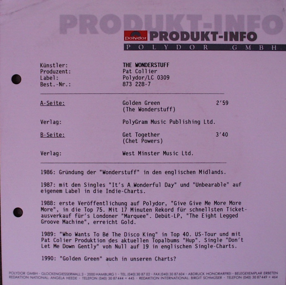 Mobile Preview: Wonder Stuff, The - Golden Green / Get Together - 7"